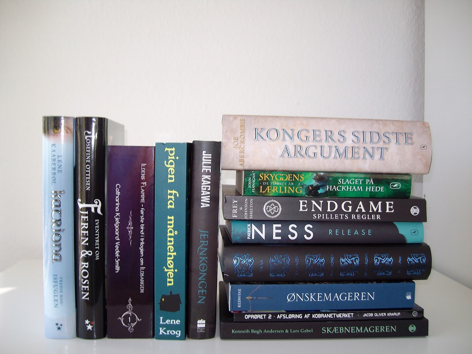 Mht. læste bøger, så er jeg nu nået dertil, at der ikke er plads til flere reoler i lejligheden, så nu lægger jeg bøgerne ovenpå de andre, og enkelte hylder har jeg lagt bøgerne ned så de ligger i vandrette stabler. Så er der nemlig plads til ca. en halv hyldes bøger mere per hylde. Det er dog uholdbart i længden, så jeg forsøger også at rydde ud i bøgerne indimellem. Nogle af bøgerne forærer jeg væk, og nogle donerer jeg til Læs for Livet. Og så er der en køb/salg/byttebutik i Esbjerg med et ok udvalg af engelsk fantasy som jeg også besøger en gang imellem. Problemet er dog, at jeg altid kommer derfra med bøger som erstatning for dem jeg havde med, så det hjælper ikke det store på pladsen.